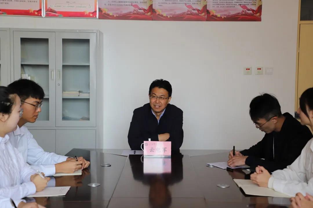 云电军在座谈时指出,同学们要以职业规划为导向,主动适应市场、适应职场,根据自身条件找准未来的职业发展方向。特别是在大三大四的关键时期,同学们更要坚定信心,发挥自身优势,合理规划时间,增强自主学习能力,利用好各类竞赛、第二课堂等学术性活动,增强知识储备和技能储备,以良好的心态应对即将到来的升学、择业等挑战。座谈最后,云电军用习近平总书记的话鼓励参加座谈的学生:“现在,青春是用来奋斗的;将来,青春是用来回忆的。”