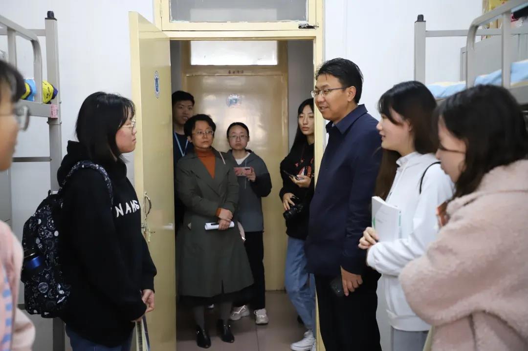 26日上午,云电军对学生宿舍进行走访,期间,云电军对宿舍的卫生情况进行了检查,并就宿舍硬件建设和宿舍文化等问题与学生们进行交流。