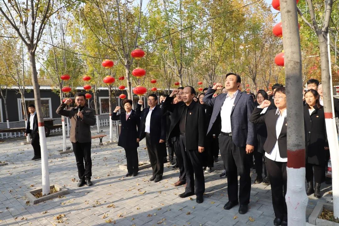 仪式过后,参与活动的师生共同在王维屯村党建公园的党旗下重温入党誓词。