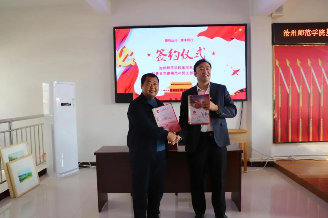 王双库与青县县委组织部部长张永志出席“爱我运河 携手同行”联合党建项目签约仪式并分别致辞。