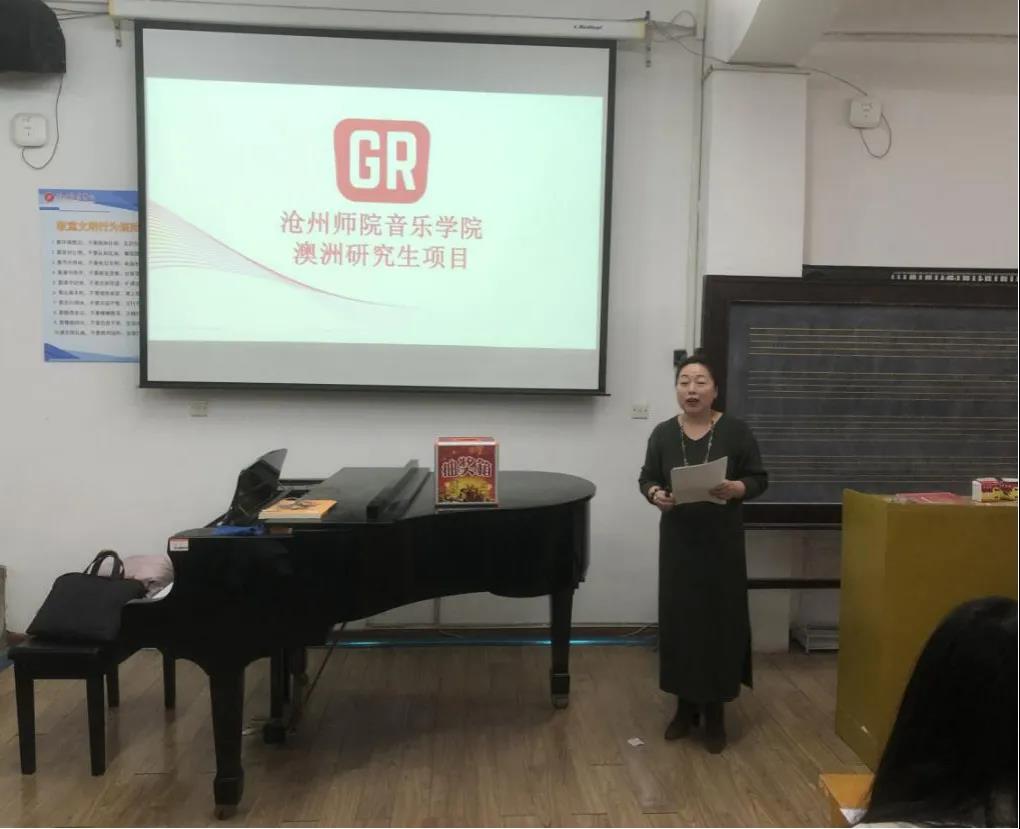 为积极推进太阳集团教育对外开放进程,进一步拓宽学生海外升学空间,11月12日,国际交流学院邀请澳洲GR group集团公司河北分部负责人李励进行澳大利亚音乐学院硕士项目专场宣讲。音乐学院院长郭玉华主持,国际交流学院院长韩丽梅出席宣讲会。