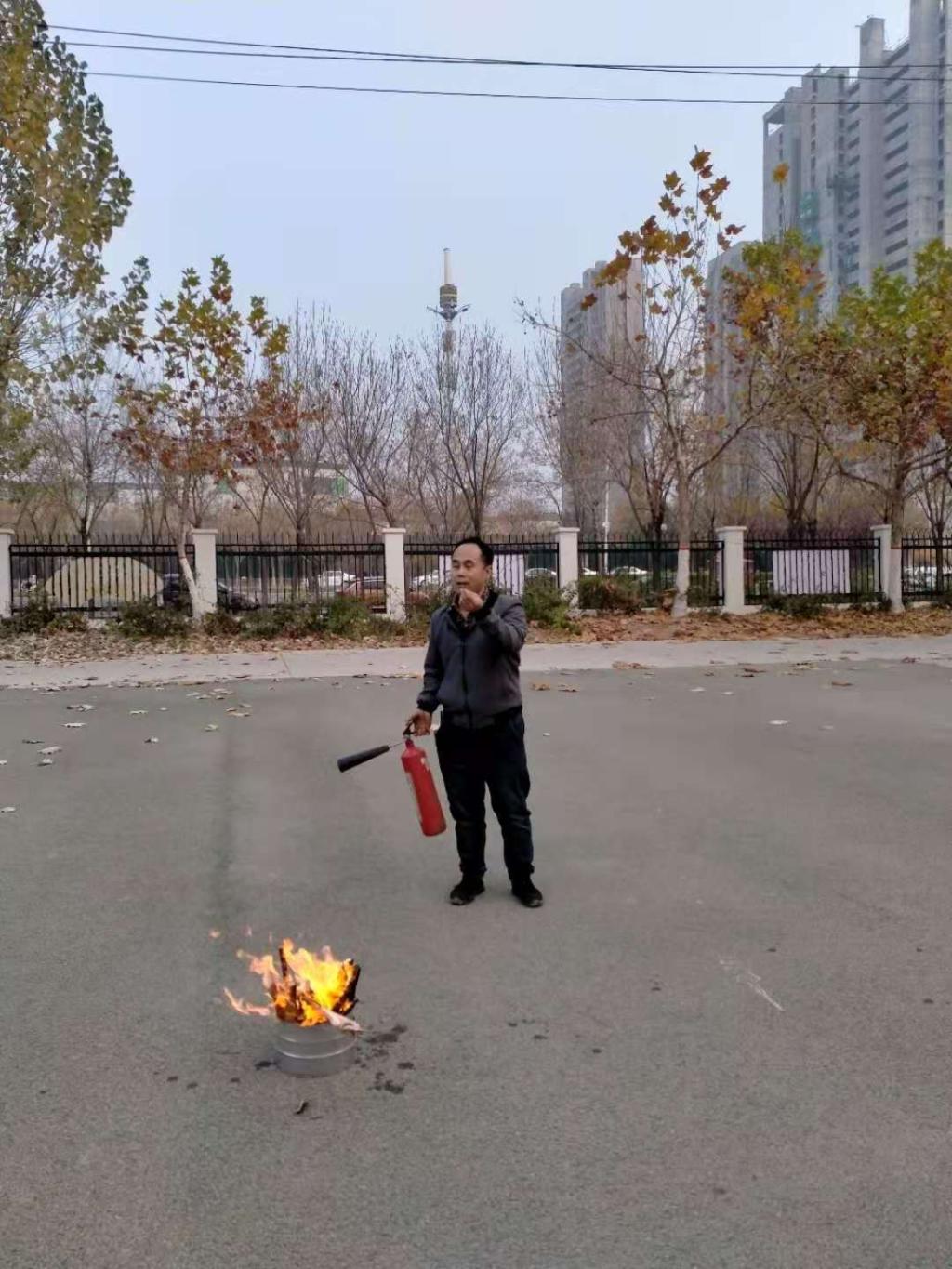 消防维保人刘少忠员现场讲解二氧化碳灭火器使用方法