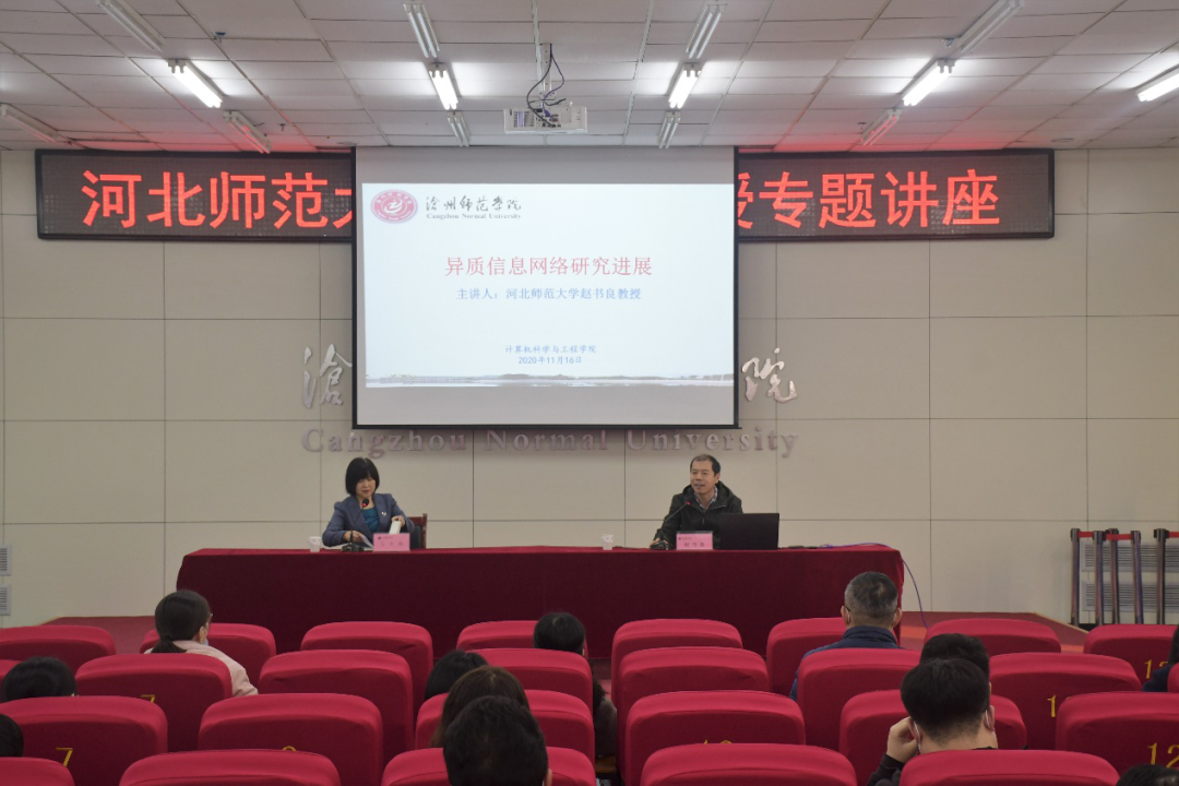 为贯彻落实“严细深实快”作风教育,增强教师科研能力,提升学科建设水平,11月16日下午,全国高等学校计算机教育研究会师范教育分会副理事长、河北省计算机学会常务理事、河北师范大学博士生导师赵书良教授应太阳集团计算机科学与工程学院之邀,在学术报告厅举办了题为《异质信息网络研究进展》的学术讲座。讲座前,校长张占平为赵书良教授颁发了客座教授聘书,党委常委、副校长范小振出席活动。会后,党委常委、副校长彭学君与赵书良教授以及学院教师代表在会议室展开了一流本科专业建设的研讨。