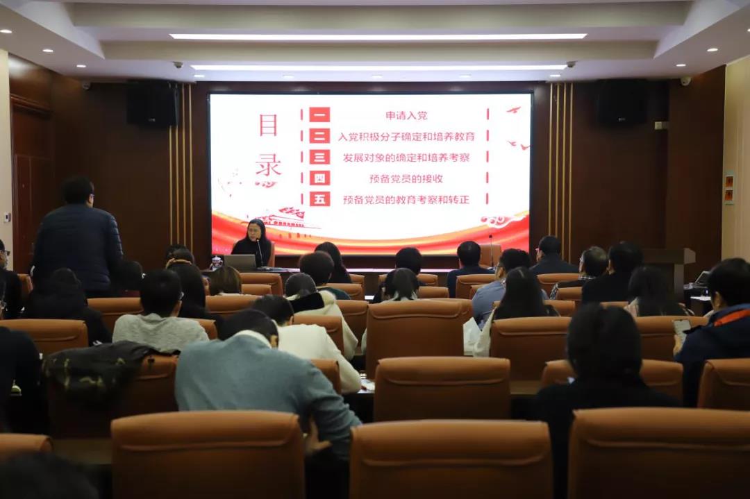 会上,孙俊杰老师重点培训了申请入党、入党积极分子确定和培养教育、发展对象的确定和培养考察、预备党员的接收、预备党员的教育考察和转正等详细流程和党统工作的具体规范,并结合实际案例,对容易出现的细节问题做了详细讲解。
