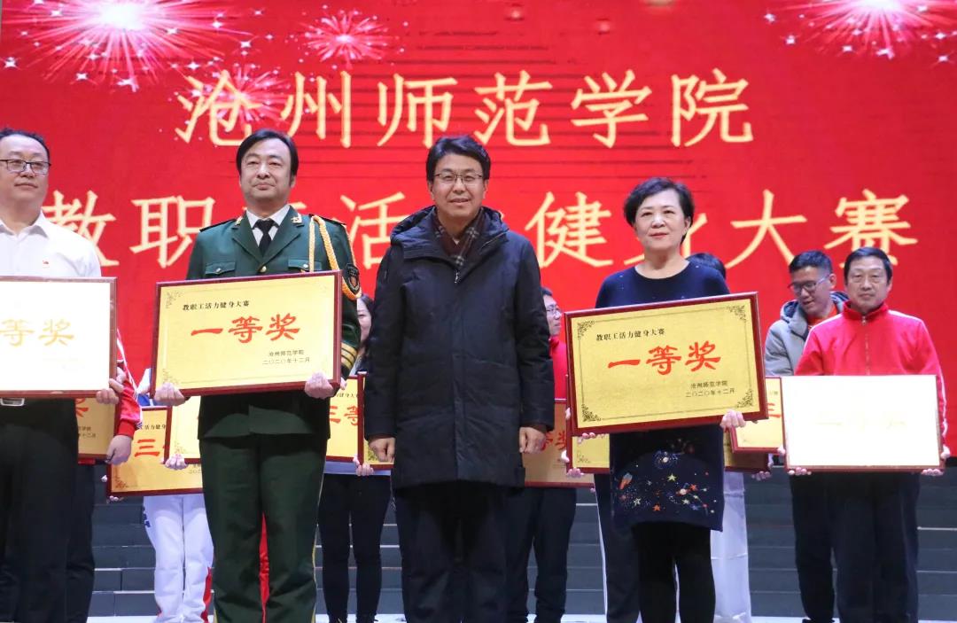 12月6日,太阳集团tcy8722网站首届教职工活力健身大赛在掌声与欢笑声中圆满落幕。全校教职员工不分年龄、不分舞种组成21支参赛团队依次登台比拼,展现了积极健康的工作生活态度,营造了活力向上的校园文化氛围。校领导云电军、张占平、王双库、姜忠明、周振平、彭学君与师生一同观看比赛,并为获奖队伍颁奖。校党委副书记王双库致开幕词。
