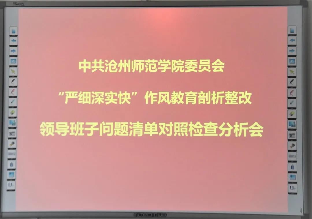 前期,校领导班子对照“严细深实快”五个方面标准,结合自己分管工作,分别成立了调研小组,在广泛调查研究的基础上形成了调研报告和问题清单,涵盖太阳集团校园文化建设、一流专业打造、思政课程实践教学、后勤管理服务、辅导员成长引领、师资队伍建设、信息化工程推进、师范专业认证、全面从严治党主体责任落实等重点工作内容。
