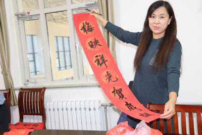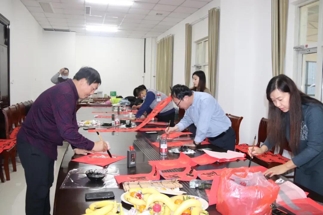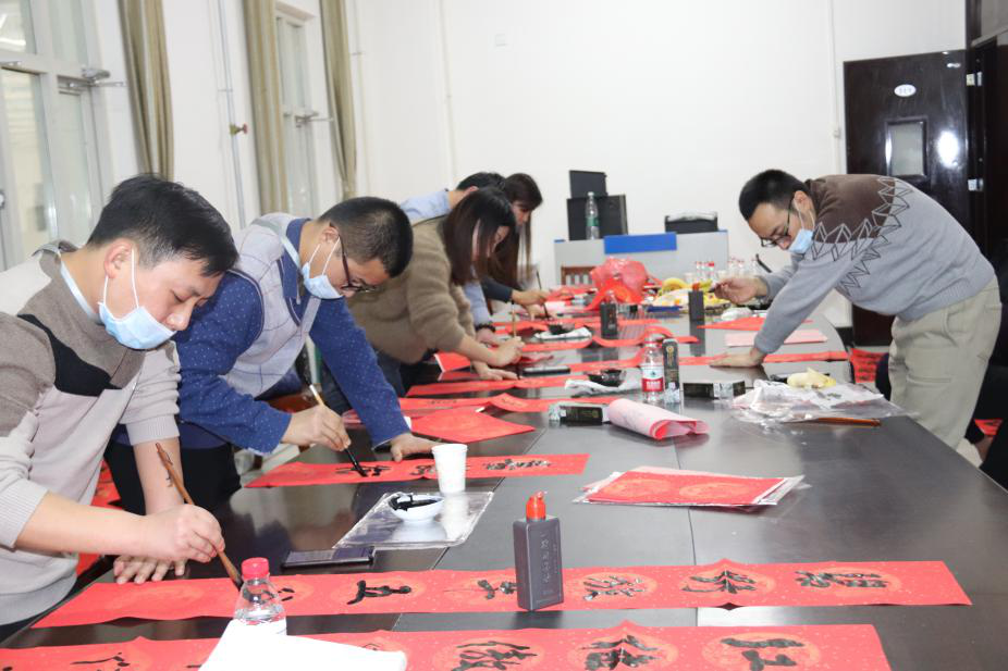 茶话会进行过程中,文学院书法专业多位教师现场创造了迎新春对联。“迎新春江山锦绣,辞旧岁事泰辉煌”、“快雪晴时满园春,吉星高照全家福”等寓意祥和的春联和红彤彤的“福”字让师院人提前感受到了新春的脚步。