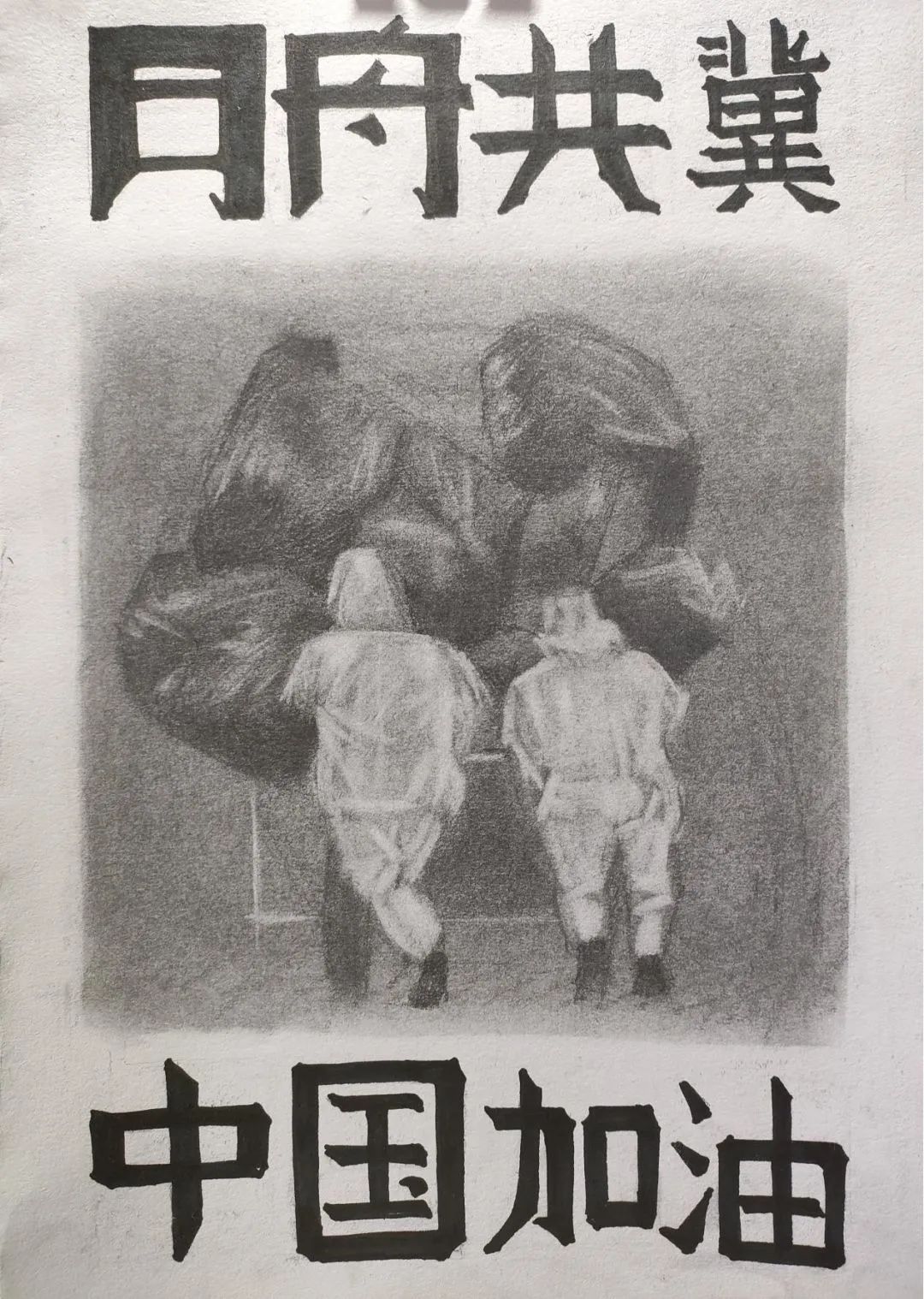 本期作品出自美术学院石家庄籍学子之手,他们作为本次疫情的亲历者,更加真切地感受到了逆行英雄的伟大,志愿者的不易和来自于国家、社会、学校等各个层面的关心。因此,每幅作品都笔触真挚、饱含深情。下面我们一起来欣赏吧!