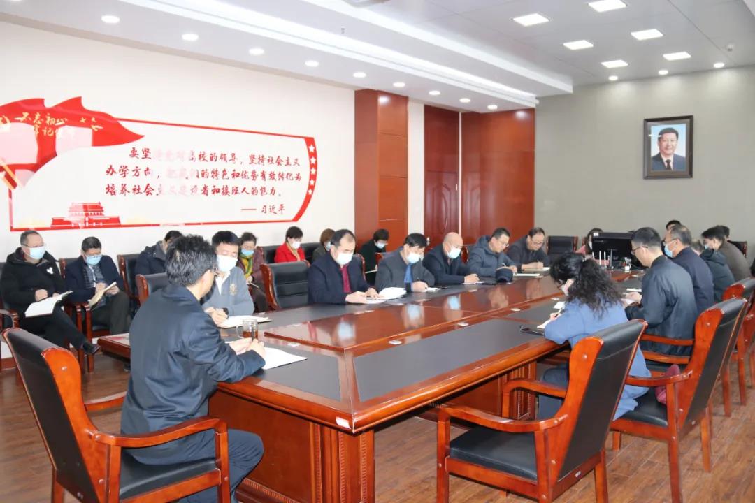 会上,党政办公室主任刘贵振传达了《河北省教育厅应对新冠肺炎疫情工作领导小组关于印发<河北省2021年春季学期学校开学安排及疫情防控工作方案>的通知》的文件精神。学生处处长辛智广,教务处处长吕炳君,党委宣传部部长赵振岗,后勤服务中心主任李金鑫,安全处处长单勇分别就寒假以及开学前后做好师生返校、学生报到注册、教学安排、宣传报道、校门管控、校园安全、医疗保障、后勤服务、健康管理等工作进行了汇报。