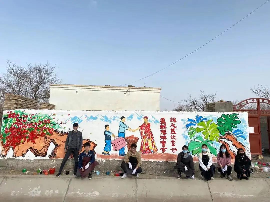 美术学院学生在轮台县阳霞镇开展“乡村振兴”文化墙绘活动