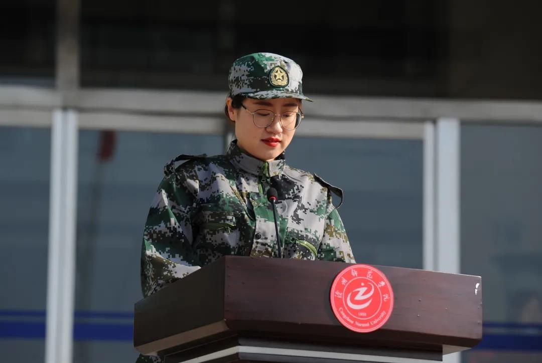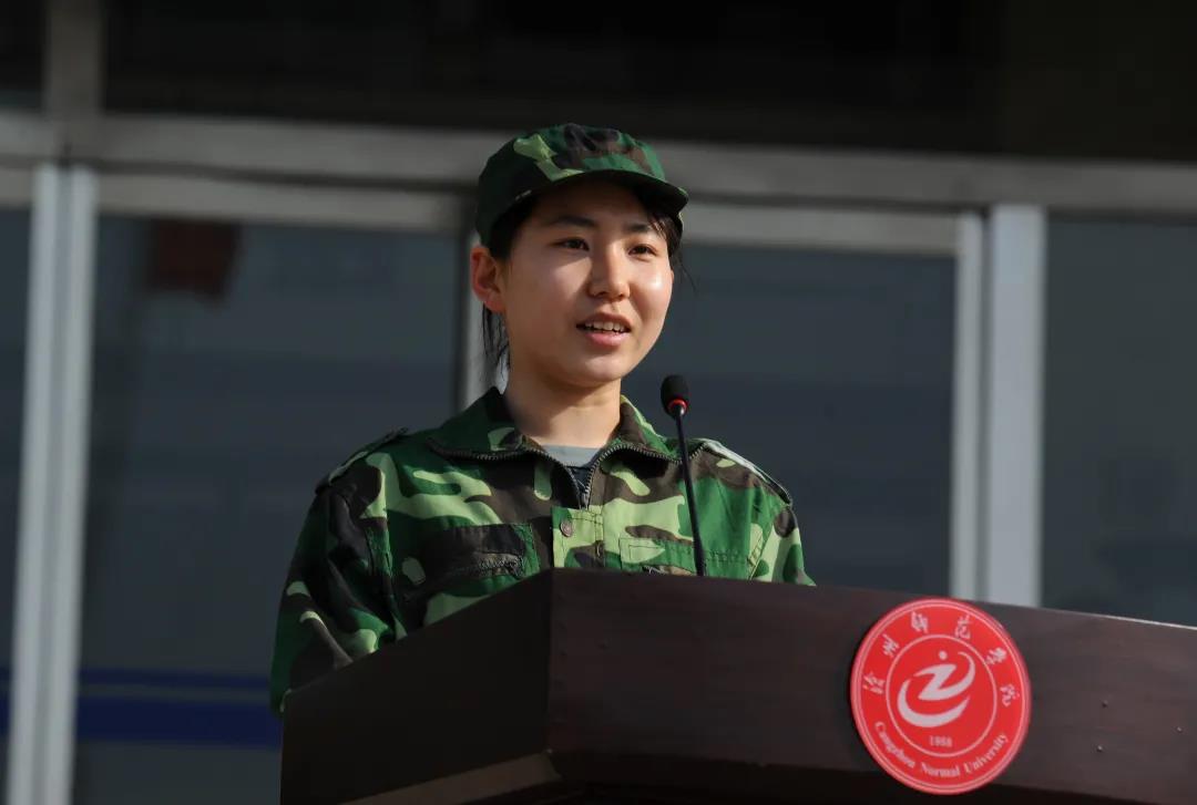 教官代表化学与化工学院满恒硕同学、指导员代表化学与化工学院老师于靖、学生代表经济管理学院刘嘉星同学依次上台作表态发言。