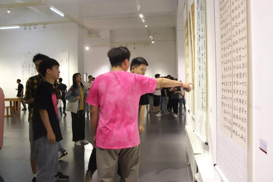 文学院院长王金萍和书法学专业学科负责人田雨潇分别介绍了书法专业发展成就和参展作品情况。文学院党总支书记孔令升主持开幕式。学生代表张雅雯分享了创作心得并带领全部同学致答谢词。毕业生们齐声高喊“老师辛苦了”,让展览更显暖意融融。
