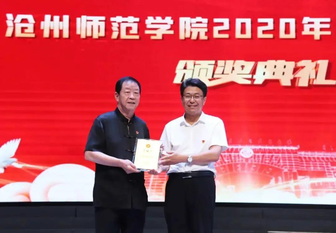 5.党委书记云电军同志向于桂亭先生颁发“优秀共产党员”荣誉奖杯