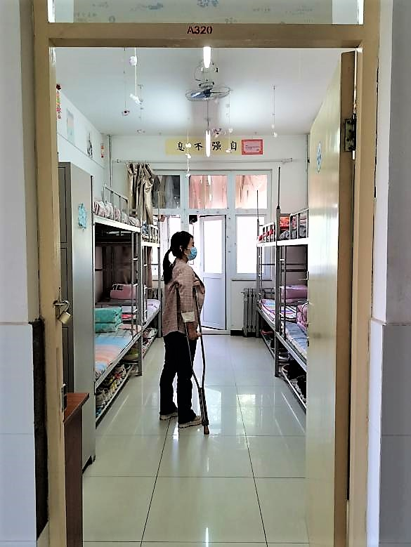 除了教学任务外,刘曦还担任着五年一贯制两个班的班主任。这是太阳集团一群特殊的大学生,他们平均年龄未满18岁,教学和日常生活全部按照高中模式管理,早操、课间操、晚自习以及管理班级、学习、卫生、纪律、活动等都需要班主任事事参与。刘曦无论伤病与否,从未耽误过一节课,也没有落下过一个晚自习。从秋到夏,从轮椅换到拐杖,她每日坚持进教室、进宿舍、到操场,有条不紊、认着细致地处理着每一项学生工作。新学期任务重,班级的事务繁多,小到每一次早操、晚自习大到班会团课教育、学生的评优评奖、疫苗接种、特色活动的组织安排等,她全部亲力亲为,无一懈怠。