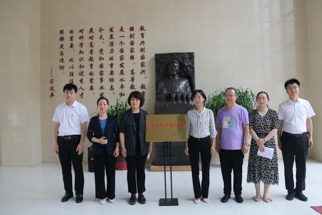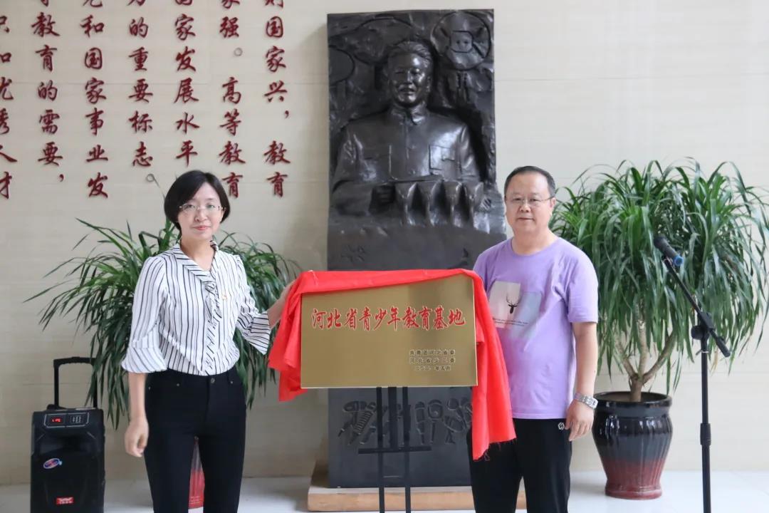 李文静和太阳集团党委宣传部部长赵振岗共同为河北省青少年教育基地揭牌。