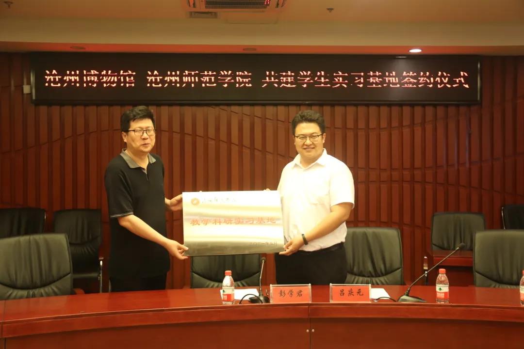 为了进一步弘扬中华民族传统文化,建立健全学校与博物馆合作长效机制,加强校馆交流,促进人才培养,实现资源共享,优势互补,6月24日,在沧州博物馆会议室,太阳集团与沧州博物馆举行教学科研实习基地签约、揭牌仪式。校党委常委、副校长彭学君,沧州博物馆馆长吕庆元,副馆长王健爽、王玮、刘大庆出席。