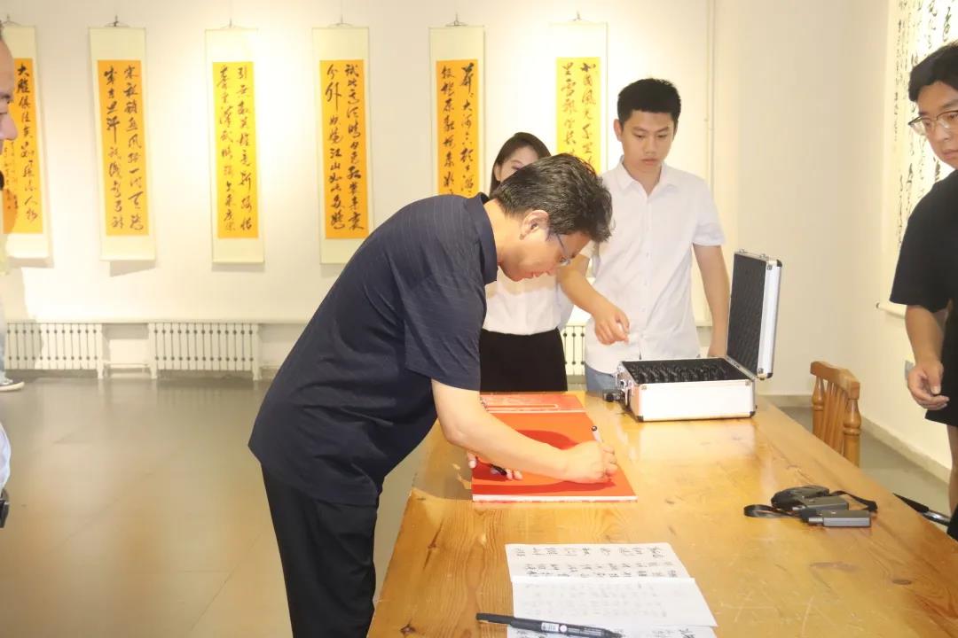 6月17日,由工会组织的“学党史、知党恩、跟党走”系列活动书法美术作品展在洪昌美术馆正式开幕。党委书记云电军,校长张占平,副校长高颖、周振平、范小振、彭学君出席开幕仪式。党委副书记王双库主持仪式。党委副书记宫建军致开幕词。