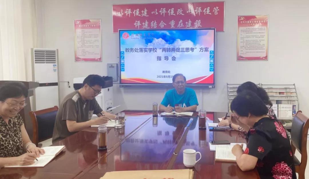 8月19日下午,校长张占平到教务处指导落实学校“两转两促三思考”方案工作会。副校长彭学君出席会议。