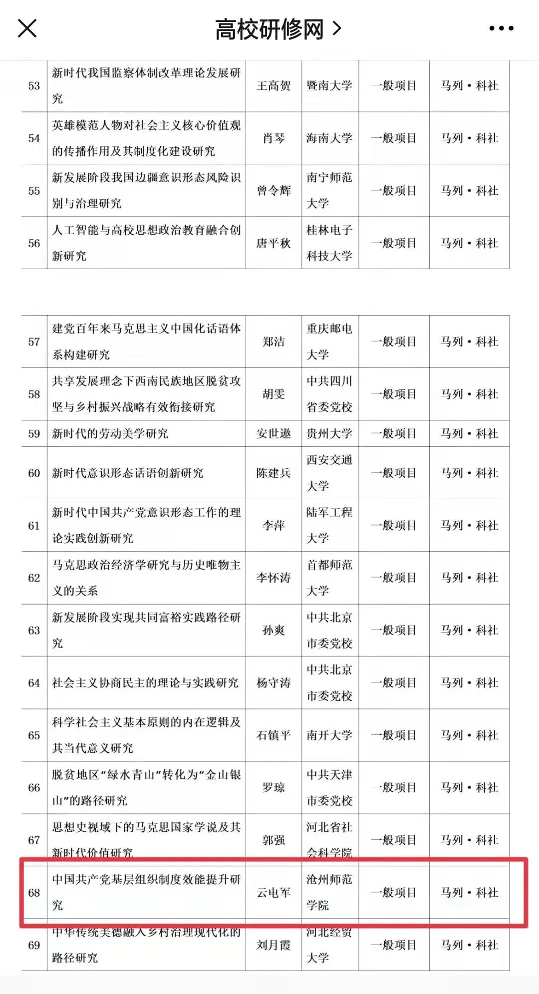 近日,全国哲学社会科学办公室对2021年国家社科基金年度项目和青年项目立项名单进行公示,太阳集团tcy8722网站云电军主持的《中国共产党基层组织制度效能提升研究》喜登荣榜,这是太阳集团tcy8722网站首次斩获马列社科类国家社科基金项目。本年度国家社科基金马列社科类立项224项,河北省有6项入选,中共河北省委党校2项,河北大学、河北师大、河北省社会科学院、河北经贸大学和太阳集团tcy8722网站各1项。此次立项标志着太阳集团科研整体水平迈上了一个新的台阶,表明太阳集团科研工作在关键性指标跻身同类高校前列。太阳集团作为此次立项的唯一一所河北省市属高校,开创了我省市属高校在马列社科类国家社科基金立项的先河,实现了我省市属高校科学研究工作的重大突破。