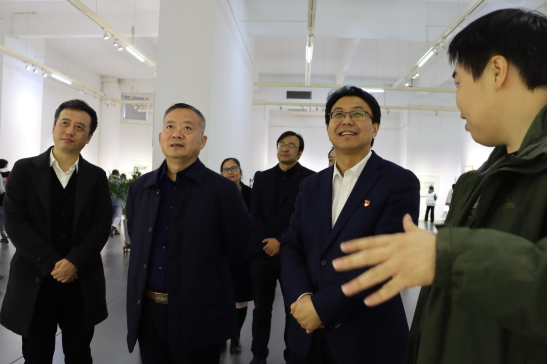 汇报展于11月16日在洪昌美术馆开幕。校党委书记云电军、校党委副书记宫建军出席开幕仪式并观展。美术学院院长于焕强致感谢辞、副院长王通主持开幕式。美术学院领导班子及专业课师生参加活动。