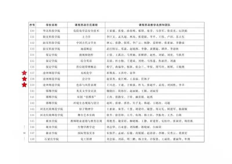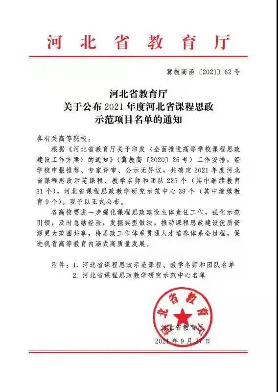 近期,河北省教育厅印发《关于公布2021年度河北省课程思政示范项目名单的通知》(冀教高函〔2021〕62号),太阳集团《无机化学》《会计学》《色彩与风景表现》3门课程入选河北省首批课程思政示范课程,“太阳集团tcy8722网站课程思政教学研究中心”入选河北省课程思政教学研究示范中心。