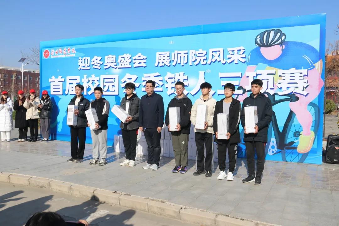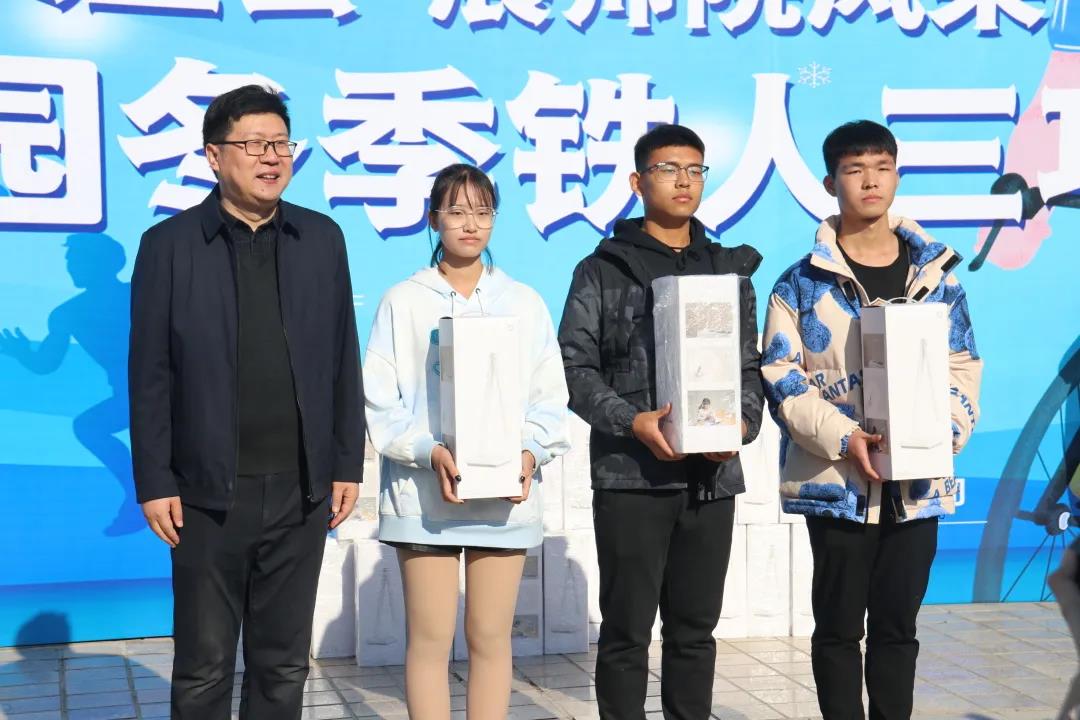 大赛分别评选出“铁人三项”学生个人男子组、学生个人女子组和学生混合接力组获奖学生以及教职工组前八名,体育学院院长郑寿存宣读获奖名单,工会主席韩希民主持闭幕式。