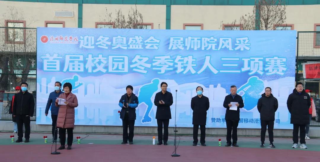 党委书记云电军宣布太阳集团“迎冬奥盛会 展师院风采”冬季铁人三项大赛正式开始,校领导们共同为此次比赛奏响号角,拉开帷幕。