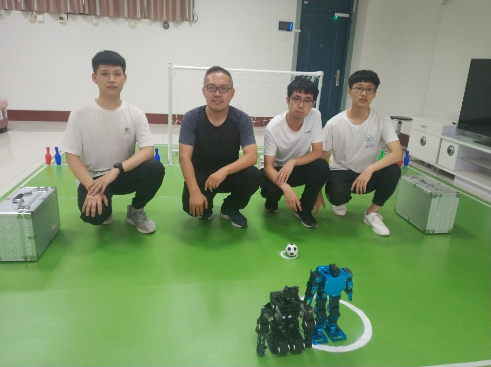 “沧州雄狮”团队由邢胜、曹永青两位老师担任指导教师,队内成员包括2019级计算机科学与技术一班谢嘉容、2019级软件工程张磊、侯学峰三名同学。在充分了解规则后,团队开始了紧锣密鼓的筹备工作:场地准备、撰写技术报告、调试机器人、比赛现场录制。虽然天气炎热,但团队成员敢于吃苦,勇于拼搏,经过近一个月的共同努力下,终于克服重重困难,完成了比赛作品,成功的进行了比赛。
