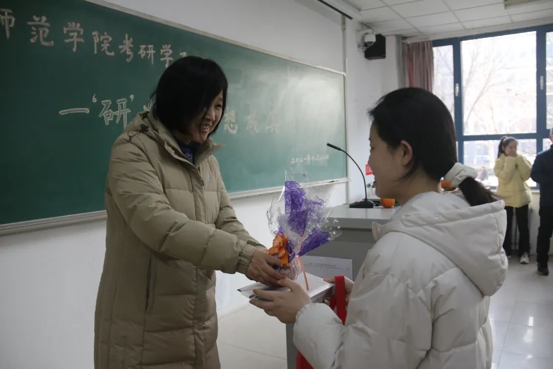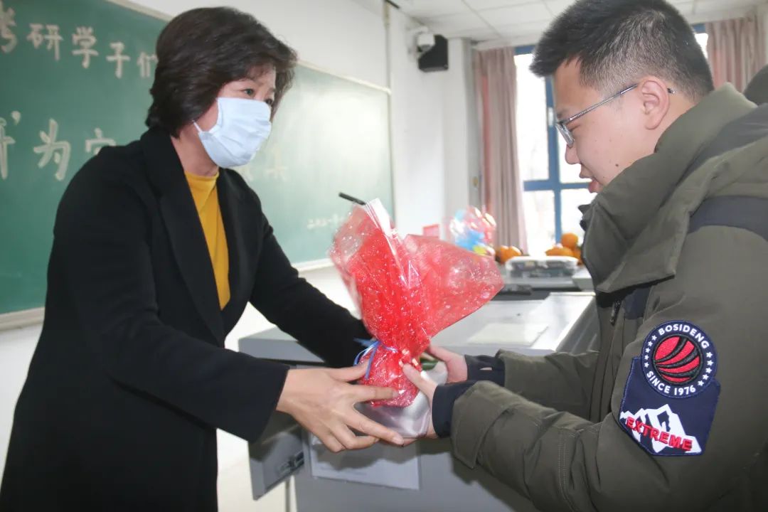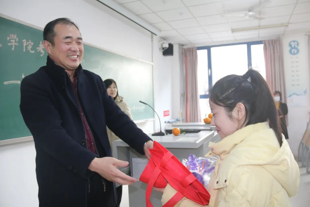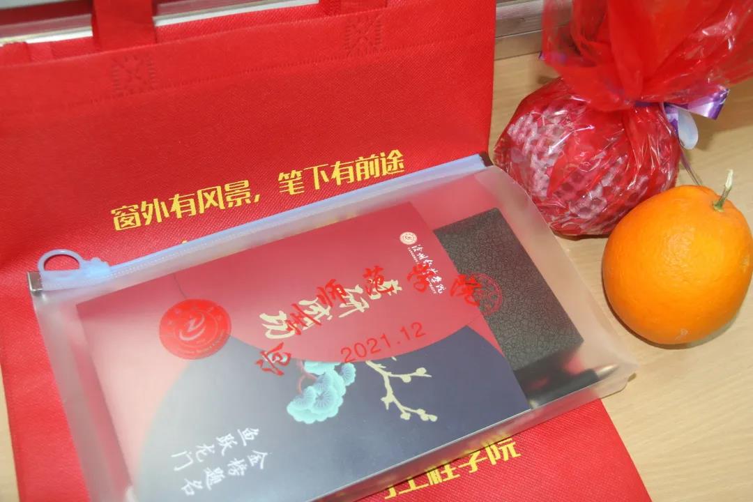 “一鼓作气,祝你成功上岸”“祝你马到成功,梦想成真”“一‘研’为定,‘研’途花开,母校等你们的好消息”......副校长高颖将学校精心准备的考研暖心礼包、加油卡和寓意着心想事“橙”的橙子送到考研学子手中,也送上了学校党委的关怀,贴心地提醒考生注意保暖、注意饮食,叮嘱大家调整考前心态,坚定考研信念。
