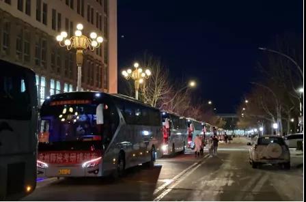 2021年12月25日,对今年的考研学子而言,是一个难以忘怀的日子。夜色还未褪去,十几辆“考研服务车”排列整齐、蓄势待发,为参加2022年全国硕士研究生统一招生考试的师院学子们提供考点专车接送服务。