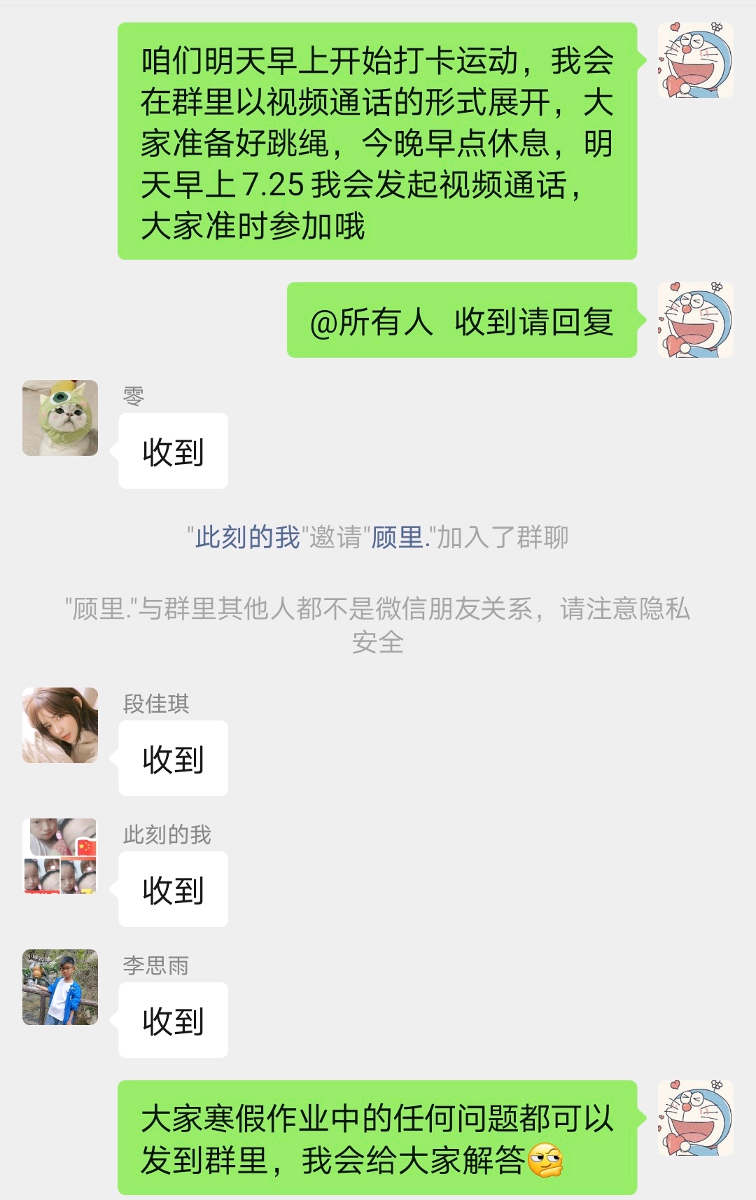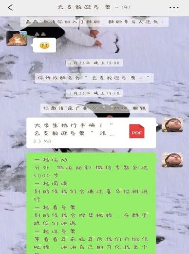 活动正式开始后,我带领分配到的两个学生,将需要进行的项目流程发送给她们,提前通过电话的形式和家长沟通好。(说实话,打电话时,确实有一点紧张。)通过这次活动我感觉很好地锻炼了自己,我也非常享受这个过程,每天陪着她们进行阅读,到晚上时不时催催微信步数截图,我感觉这个活动让我收获很多,摆脱了整天沉迷手机,无所事事。