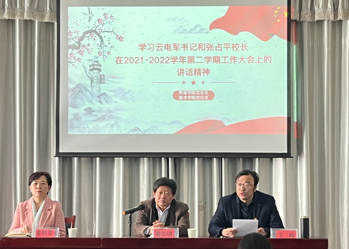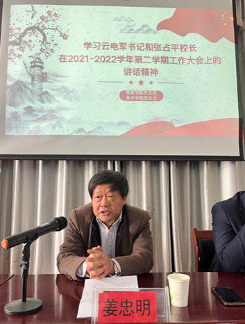 3月2日,美术学院召开专题会议,认真学习、讨论党委书记云电军、校长张占平在2012-2022学年第二学期工作大会的讲话精神。校党委副书记姜忠明出席会议,与干部教师座谈交流,并就学院新学期的建设发展提出要求。