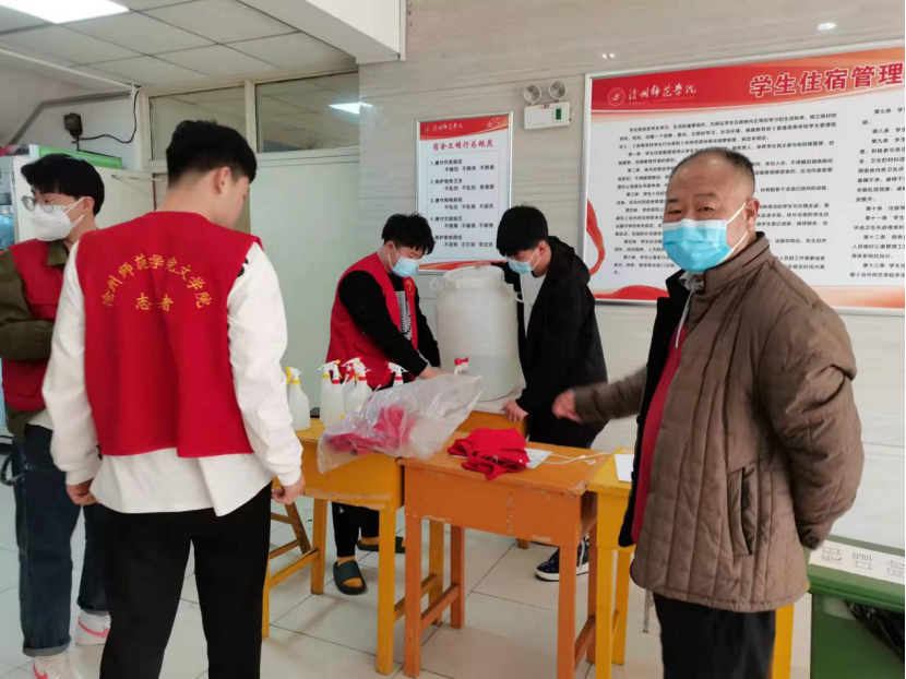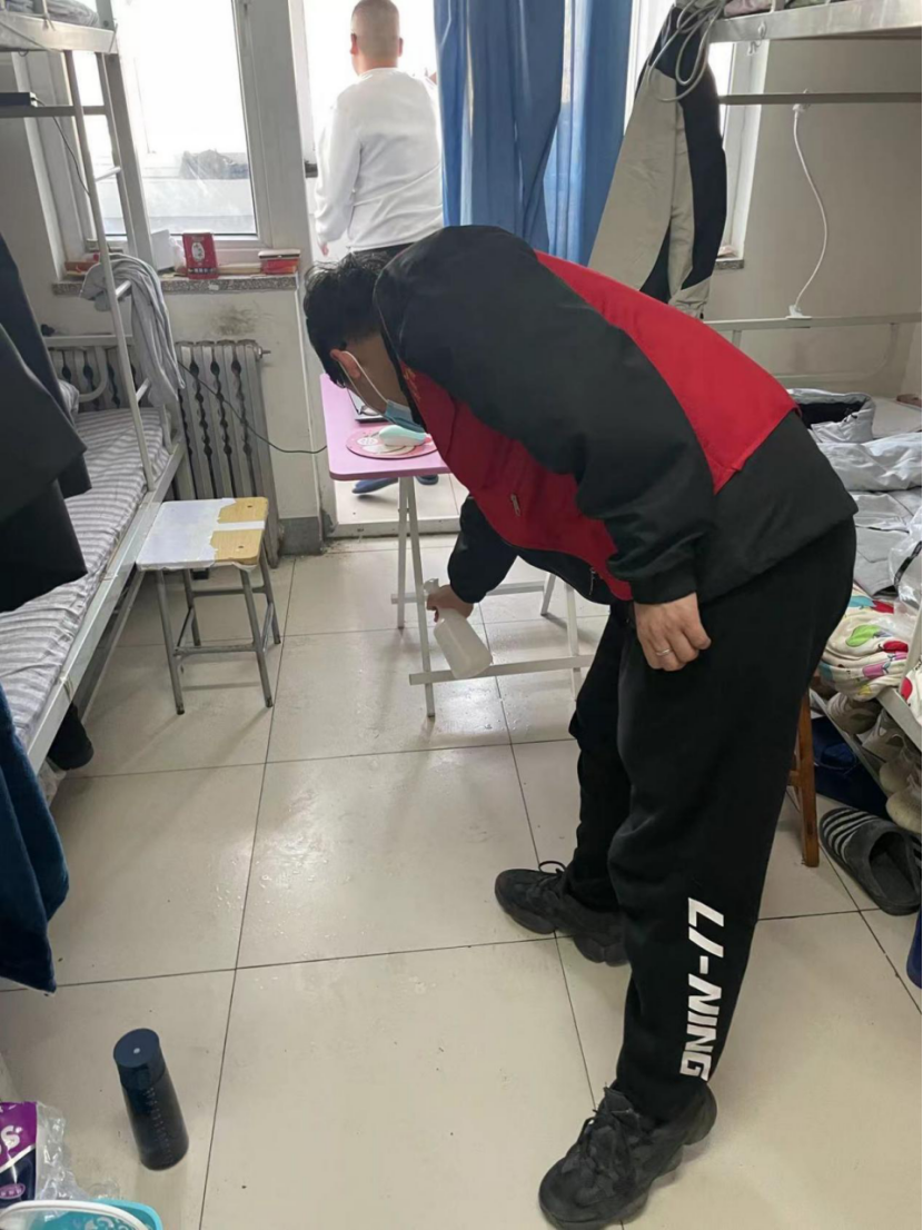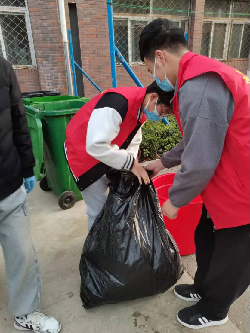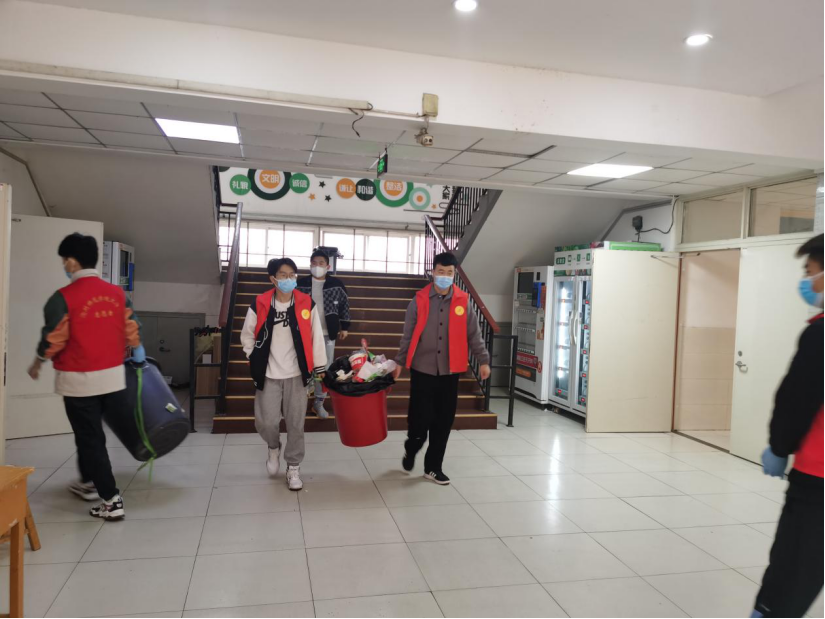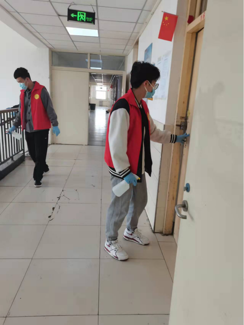 垃圾清运出楼之后,志愿者又在发展规划中心主任赵印岐、美术学院党总支副书记张倩、教师丁咚与何寄齐的指导带领下,对整幢楼进行了防疫消杀,他们逐层楼、逐宿舍用喷壶喷洒消毒液,力求全覆盖不留死角。此举得到了该楼同学们的广泛赞誉,真正做到了学生放心,包联者安心。经过师生的共同努力,目前一号楼楼区卫生环境为之一新。