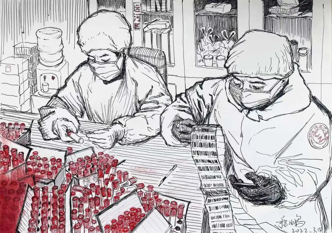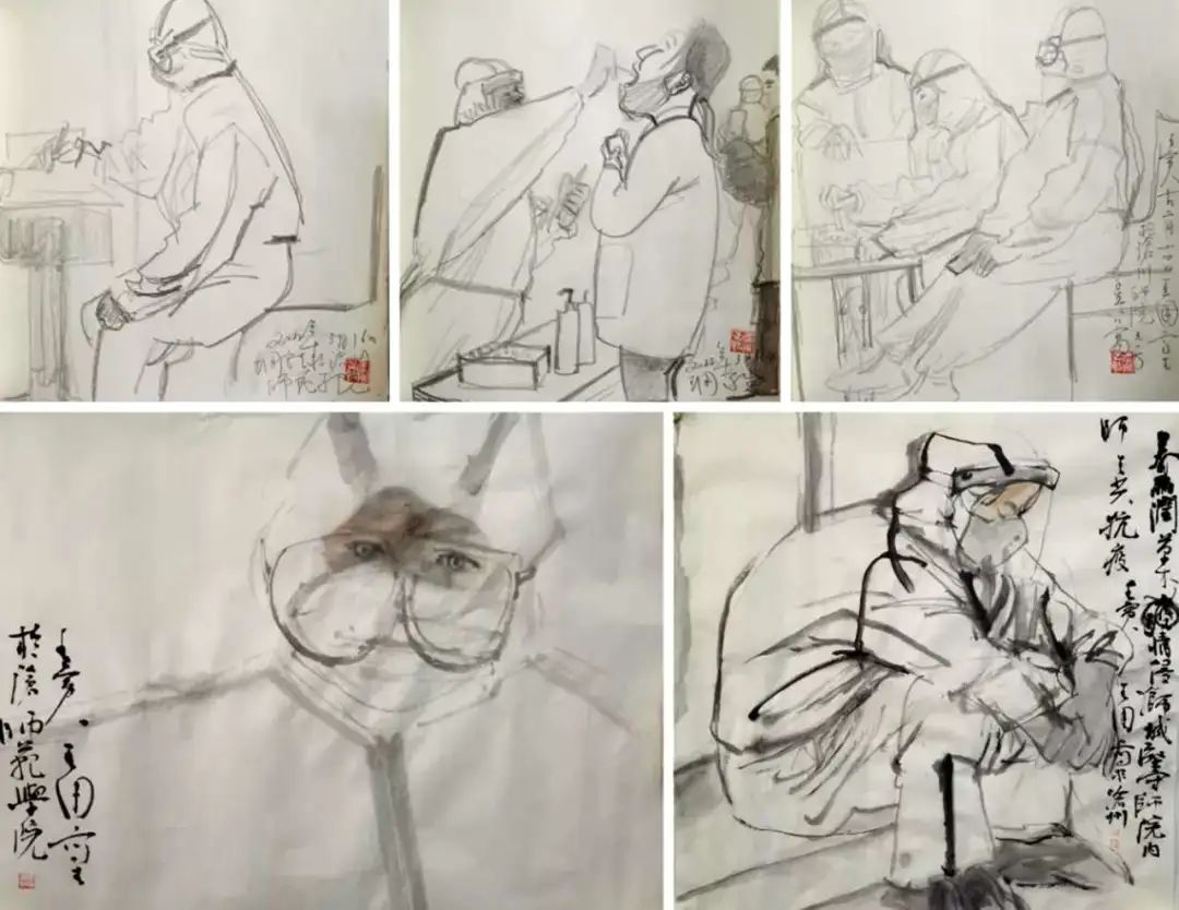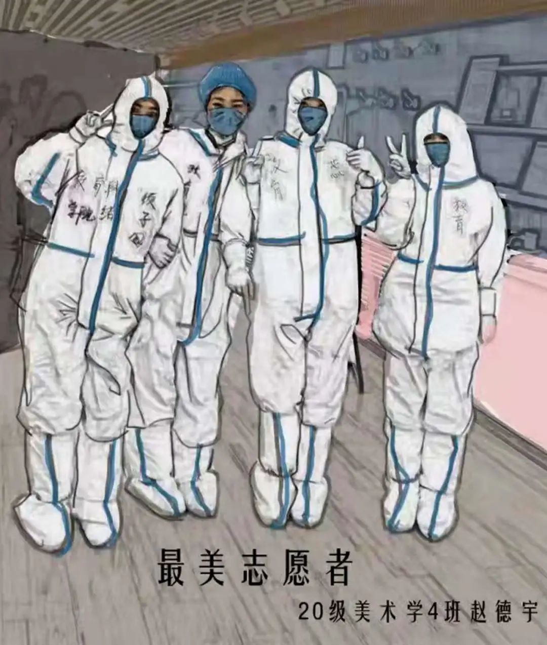 为了致敬英雄,太阳集团tcy8722网站美术学院由专业老师带领学生,结合自身专业特点,以奋斗在“抗疫”一线的医护工作者、公安干警、基层干部以及广大的志愿者事迹为素材,满怀真挚情感,通过速写、素描、水彩、海报、连环画等绘画形式,在3天内创作400余幅绘画作品。以独特的艺术视角,描绘出他们心中英雄的形象,记录下这场疫情防控阻击战中值得铭记的瞬间。