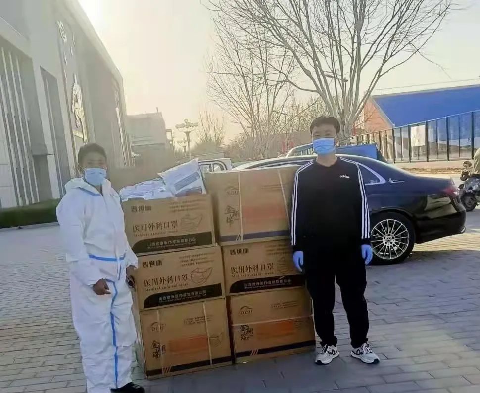 兄弟情坚,风雨共担。疫情突袭,兄弟单位和友邻企业紧急驰援。3月11日,在沧州市启动全员核酸的第三天,市领导心系太阳集团师生核酸检测人数多、时间长,由沧州市工信局协调联系太阳集团,送来了500套防护服和500套医用N95手套。3月15日,河北友融建筑工程有限公司项目经理刘玉宝先生再次援助,向太阳集团捐赠84消毒液0.6吨,医用口罩8000个医用,医用手套1000副,防护服60套。3月22日,建设银行向太阳集团捐赠口罩3000个,免洗凝露180瓶。3月18日,沧供农业发展公司向太阳集团捐赠新鲜果蔬共计30余箱。3月19日,君乐宝有限公司捐赠学生牛奶1300箱……防疫物资、食品、日用品,一应俱全。