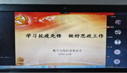 根据学校组织部关于开展主题党日活动的通知要求,发扬奋斗在防控一线师生的奋斗精神,3月29日下午数学与统计学院党总支利用腾讯会议平台开展主题党日活动。此次主题党日活动由党总支书记杨勇主持。