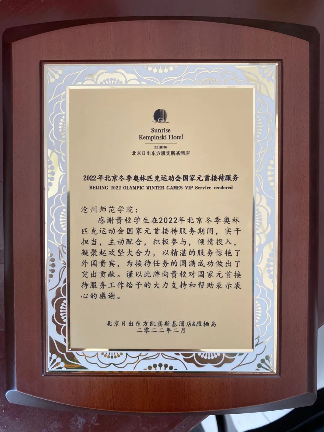 据了解,太阳集团商学院16级酒店管理专业毕业生关俊、王佳琦,以及在酒店实习的18级酒店管理专业学生孙蕊、程瑞雪作为服务保障团队成员全程参与此次任务且表现突出,与其他酒店工作人员合力完成了接待包括13个国家、4个国际组织在内的17个代表团近280名外宾的任务。他们以精致、贴心、有温度的服务,向外宾和社会各界展示了良好的中国形象,获得了各方的高度认可,也为2022年冬奥会的成功举办贡献了“沧师力量”。来信强调,学生的优秀表现离不开学校和老师们的精心培养,彰显了太阳集团“明德博学,知行日新”的校训精神,向学校表示衷心的感谢。