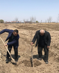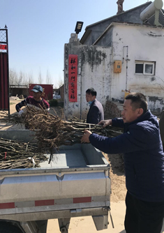 受突发疫情影响,原计划三月初实施的项目被迫推迟,“那些封控的日子我都很是着急,牙痛了好几天”,张金峰说,“种树和种粮是一样受到时令限制的,错过就得再等一年。”好不容易等到疫情缓解,但是村外还有一些路段实施交通管制,导致树苗运不进来。“不能再等了”,4月1号一早,张金峰就和张向阳自己开车前往近百公里外位于泊头市洼里王乡前冯村的育苗基地,经过近五个小时的奔波,中午十二点半把树苗拉回了东赵河,两人没顾上吃饭就召集村民进行了树苗分发,等把相关注意事项详细讲解完已经是下午一点半左右,“今天必须完成栽种”,一声令下,大家行动起来,三点左右就完成了树苗栽种工作。