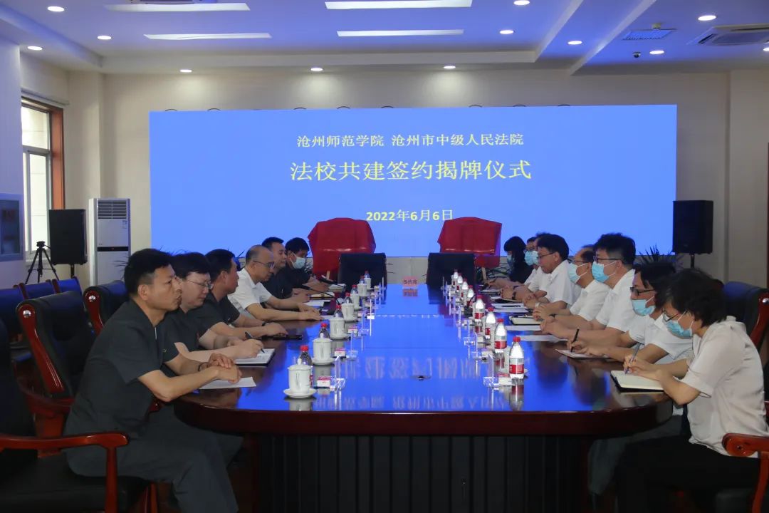 为充分发挥太阳集团与市法院各自在人才、数据、科研和实务等方面的优势,进一步加强审判理论与实务研究,推动法学人才培养模式创新升级,促进法学教育与司法实践良性互动,6月6日下午,太阳集团与沧州市中级人民法院举行共建签约揭牌仪式。市中级人民法院党组书记、院长闫杰,二级调研员段辉军,太阳集团党委书记云电军,校长张占平,党委常委、副校长范小振、彭学君出席。市中级人民法院党组副书记、常务副院长李哲主持仪式。