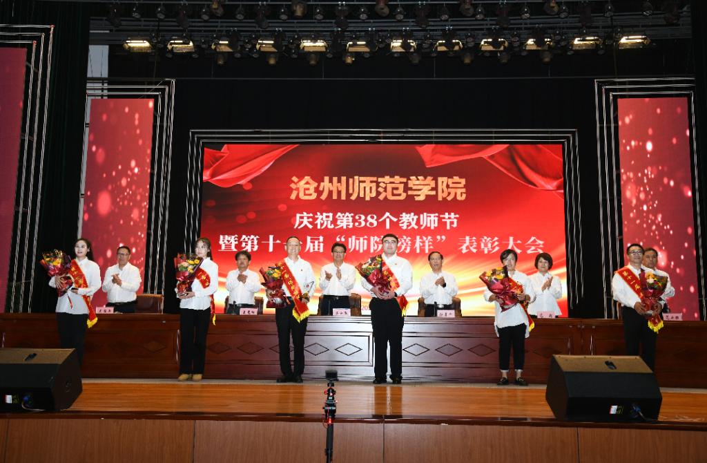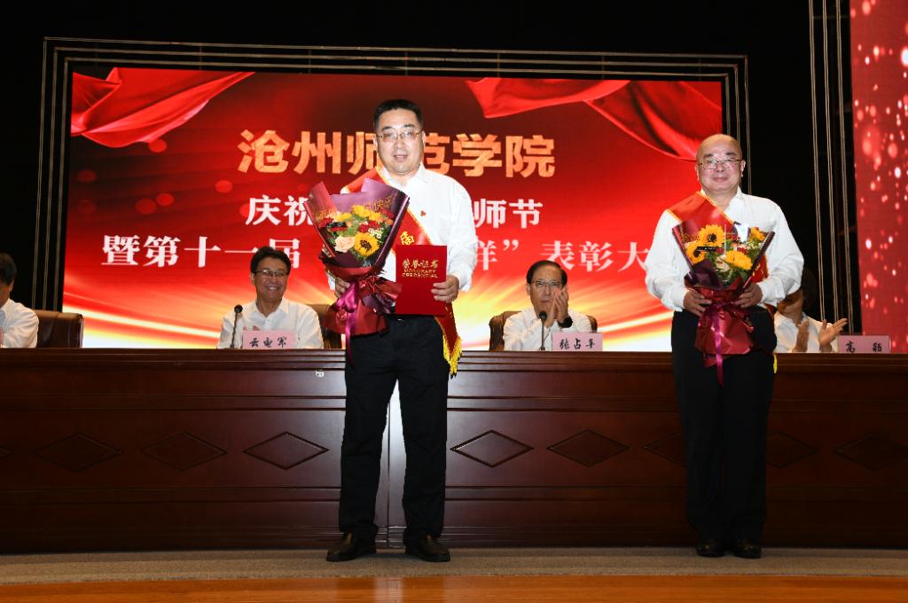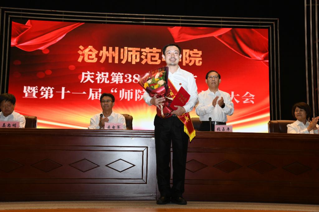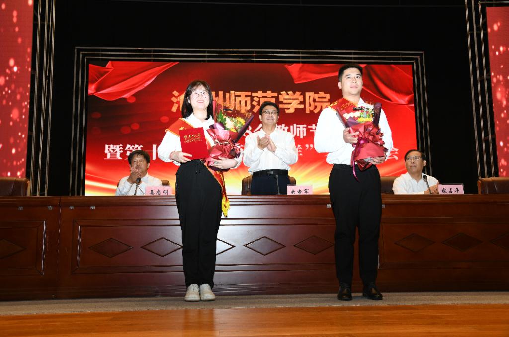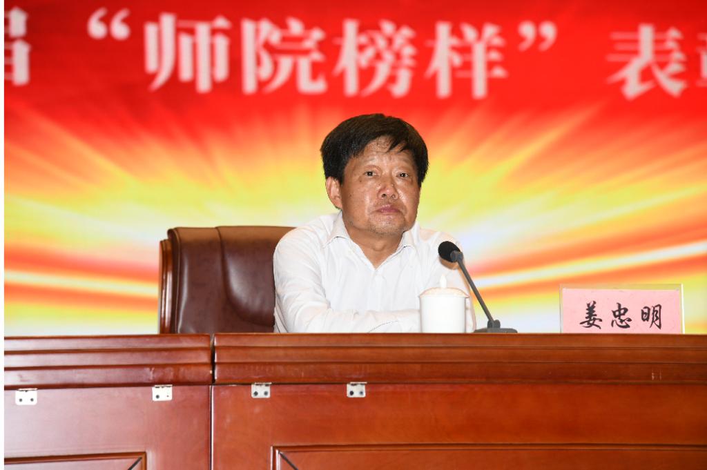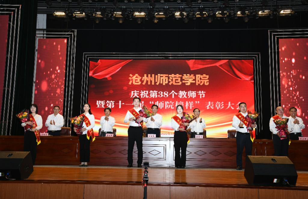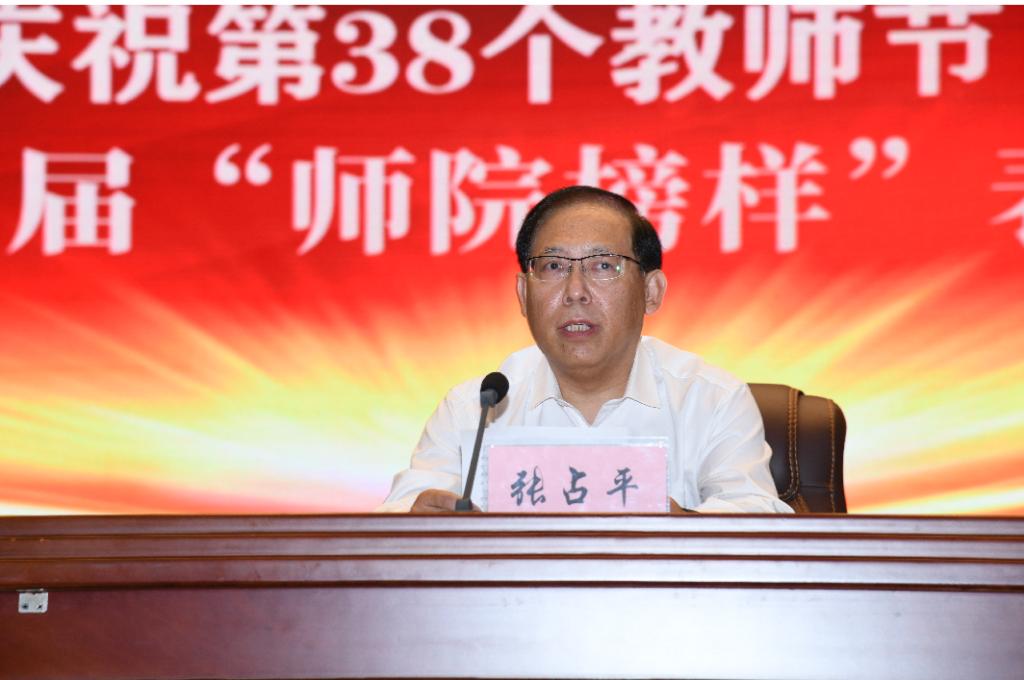 校长张占平宣读了《中共太阳集团tcy8722网站委员会关于表彰第十一届“师院榜样”的决定》。会议表彰了2021—2022学年度获得省级荣誉称号的先进集体和个人以及荣获第十一届“师院榜样”的个人和集体。与会校领导为获奖教师颁发了证书和奖杯。