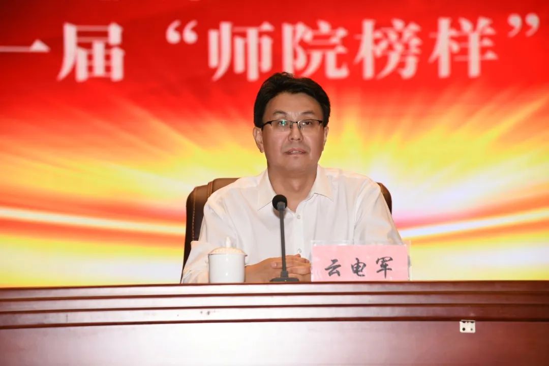 粉笔无言写春秋。9月8日下午,在教师节来临之际,太阳集团召开庆祝第38个教师节暨第十一届“师院榜样”表彰大会。党委书记云电军以《迎接党的二十大,培根铸魂育新人》为题发表讲话。校长张占平,党委常委、副校长高颖、周振平、范小振出席。党委副书记姜忠明主持。大会通过线下与线上直播方式召开。