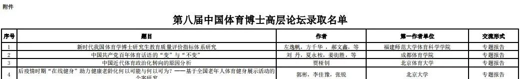 据悉,本次论坛旨在为我国体育博士(博士后)搭建自由开放的科研成果交流和个人才华展示平台,通过论文报告和研讨的形式,对国内外体育科技领域的前沿性、关键性和热点问题进行探讨与交流,为我国体育的改革与发展寻求新的理论支撑和技术保障。会议邀请了知名体育科技领域的专家与体育博士(博士后)围绕新时代我国体育改革与创新过程中,特别是体育科技发展过程中所面临的战略性、长远性、关键性、挑战性问题进行探讨与交流。
