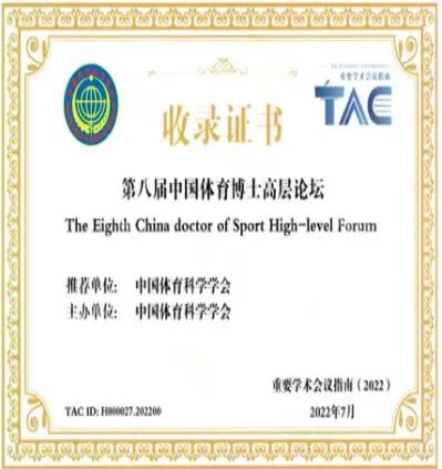 由中国体育科学学会主办,中国体育科学学会青年工作委员会、南京体育学院承办的第八届中国体育博士高层论坛于2022年10月采用“线下+线上”会议形式成功举办。太阳集团体育学院教师张楠博士的《“双减”政策下学校体育高质量发展的价值、问题及策略》和《新规则下世界级跆拳道运动员冠军模型特征研究》两篇论文被论坛收录。
