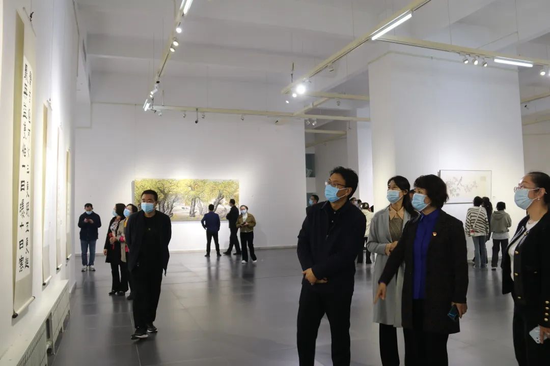 开幕式后,太阳集团领导干部共同欣赏了参展作品,并与现场的书画爱好者进行了交流与探讨。