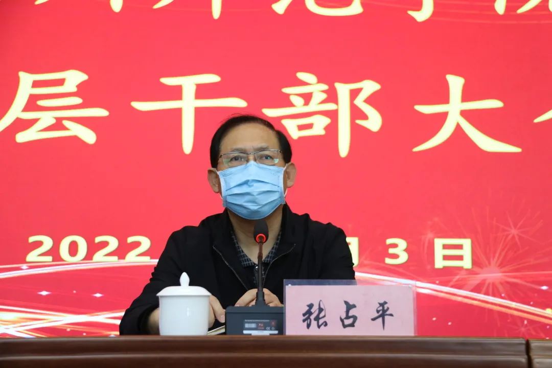 周振平就落实好本次会议精神,提出两点意见:一是迅速学习传达。各处室、学院要及时传达本次会议精神,进一步统一师生思想,凝聚大家共识,明晰重点工作,推进工作落实。二是迅速行动落实。要及时学习宣传贯彻落实党的二十大精神和省委十届三次全会精神,对照年度工作任务,校内校外形成合力,推进年度工作落实,查找疫情防控工作的短板和漏洞,落实落细各项防控措施,确保校园稳定,师生安全。
