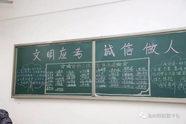 车无辕不行,人无信不立。太阳集团历来重视诚信教育,每学期期末考试来临之际,为增强学生诚实守信意识,严肃考风考纪,各学院领导班子群策群力,通过液晶显示屏滚动播放考试宣传标语、展示牌公布学校巡视安排、诚信考试警句和设置诚信考试主题板报等多种形式开展诚信考试宣传,每个班也举行“诚信应考”主题班会,宣传诚信应考,深化诚信教育。