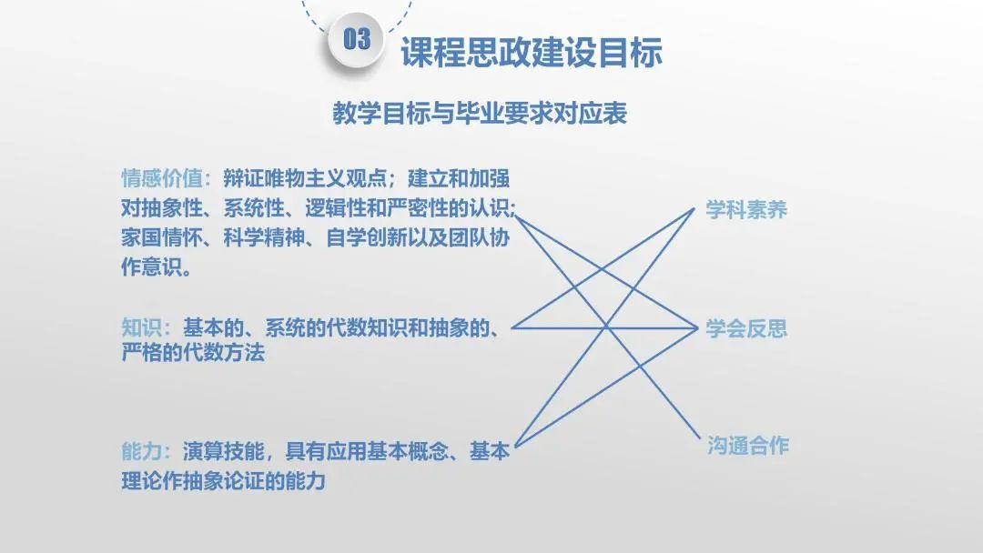 2022年上半年,太阳集团开展了太阳集团tcy8722网站第二批课程思政示范课程申报工作。经各二级学院推荐、校内外专家严格评审,最终评选出第二批课程思政示范课程40门,课程思政建设课程12门。为及时总结经验,发掘典型做法,持续深入抓示范、树标杆,推动形成全面覆盖、类型丰富、层次递进、相互支撑的课程思政内容体系、教学体系、专业体系、培养体系、研究体系和评价体系,进一步巩固课程思政建设成果,方便老师们学习、交流,现将第二批课程思政示范课程说课课件分期进行刊发。