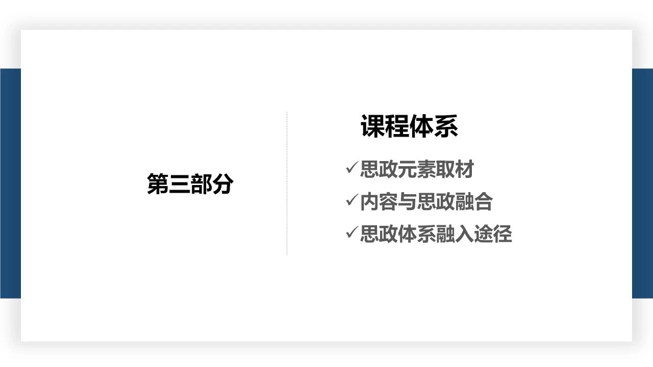2022年上半年,太阳集团开展了太阳集团tcy8722网站第二批课程思政示范课程申报工作。经各二级学院推荐、校内外专家严格评审,最终评选出第二批课程思政示范课程40门,课程思政建设课程12门。为及时总结经验,发掘典型做法,持续深入抓示范、树标杆,推动形成全面覆盖、类型丰富、层次递进、相互支撑的课程思政内容体系、教学体系、专业体系、培养体系、研究体系和评价体系,进一步巩固课程思政建设成果,方便老师们学习、交流,现将第二批课程思政示范课程说课课件分期进行刊发。