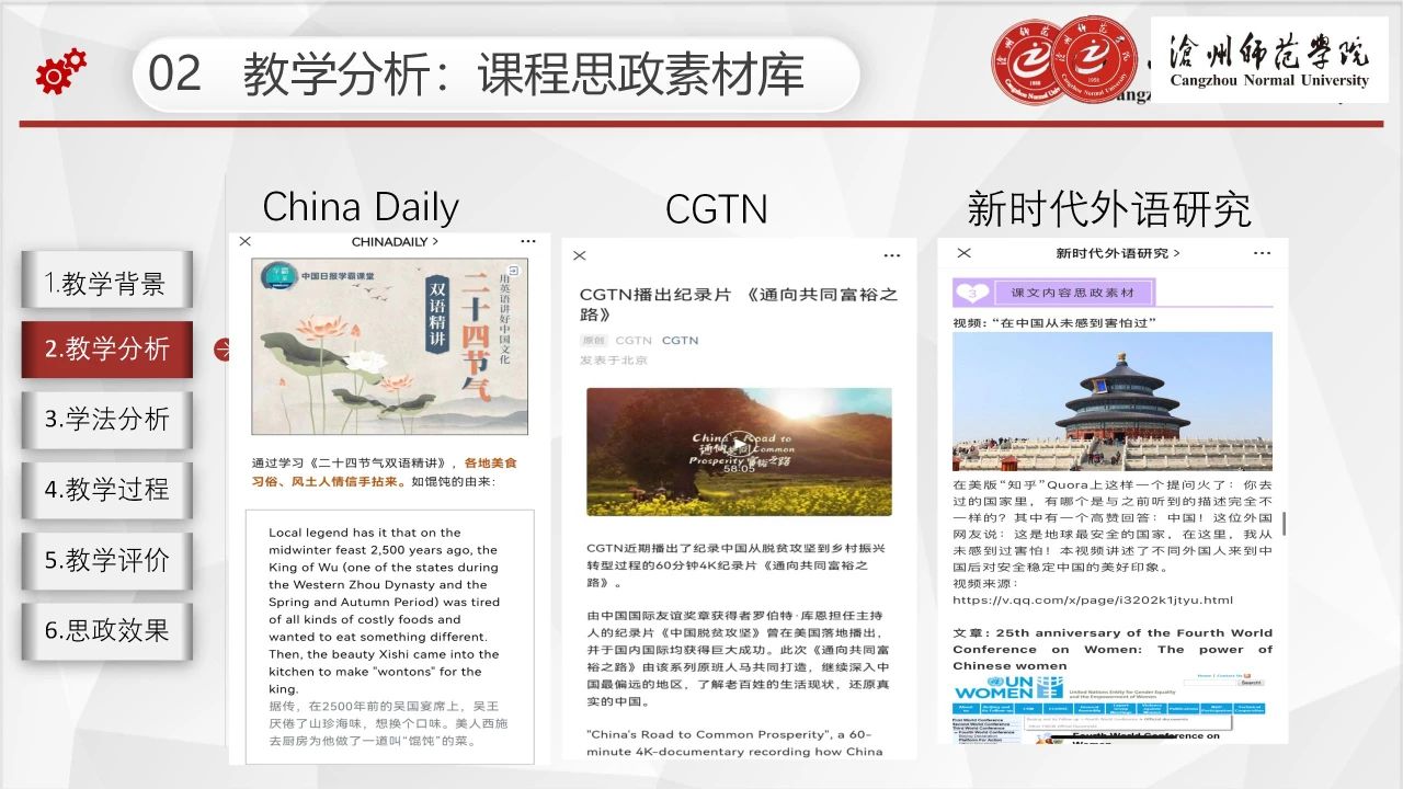 2022年上半年,太阳集团开展了太阳集团tcy8722网站第二批课程思政示范课程申报工作。经各二级学院推荐、校内外专家严格评审,最终评选出第二批课程思政示范课程40门,课程思政建设课程12门。为及时总结经验,发掘典型做法,持续深入抓示范、树标杆,推动形成全面覆盖、类型丰富、层次递进、相互支撑的课程思政内容体系、教学体系、专业体系、培养体系、研究体系和评价体系,进一步巩固课程思政建设成果,方便老师们学习、交流,现将第二批课程思政示范课程说课课件分期进行刊发。