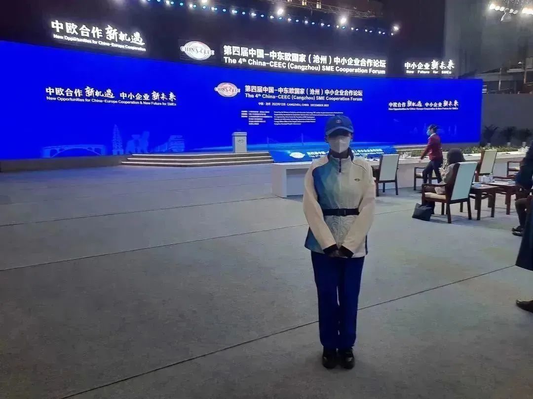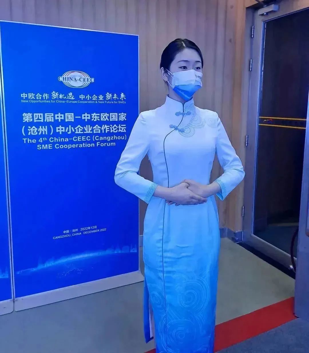 白上衣,蓝裤子,蓝白相间的旗袍,在12月15-16日举行的第四届中国-中东欧国家(沧州)中小企业合作论坛现场, 有这样一群穿着清新,笑容灿烂的青年志愿者,大家亲切地称他们为“蓝精灵”,这就是来自师院的青年志愿者们。